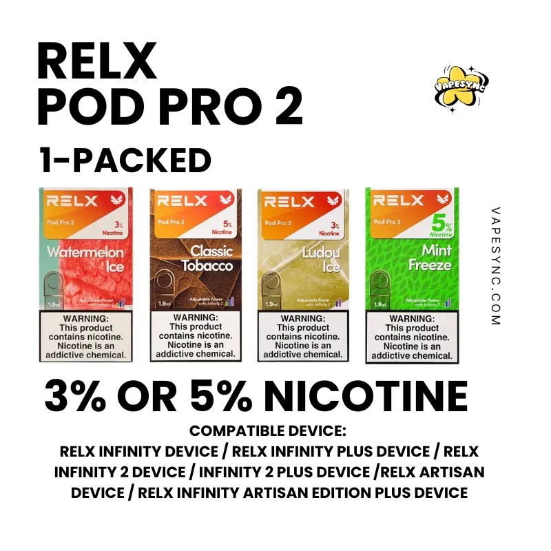 | Flavor | Orange Sparkle, Taro Scoop, Avocado Smoothie, Banana Freeze, Crisp Apple, Cranberry Blast, Classic Tobacco, Dark Sparkle, Forest Berries, Fresh Peach, Grape Apple, Green Grape Ice, Grape, Hibiscus Ice Tea, Hazelnut Latte, Honeydew Melon, Honey Pomelo, Iced Black Tea, Iced Jasmine Green Tea, Icy Rose, Ice Sparkling, Juice Apple, Kiwi Blast, Lychee Frost, Ludou Ice, Lemon Ice Tea, Longjing Ice Tea, Lychee Lemonade, Lemon Mint, Lime Sparkle, Lychee Ice, Mint Freeze, Mango, Menthol Xtra, Pineapple, Passion Fruit, Pink Guava, Plum Ice, Pink Lemonade, Red Buzz, Strawberry Burst, Smooth Mango, Spearmint, Tangy Grape, Thai Milk Tea, Tieguanyin Tea, White Coffee, Watermelon Ice |